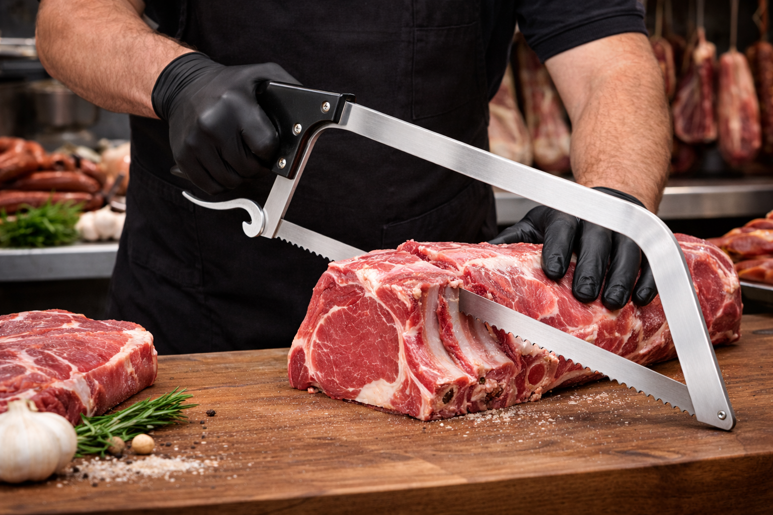 It is ideal for cutting bones, frozen meat and poultry, delivering smooth, controlled, and precise manual cutting performance.