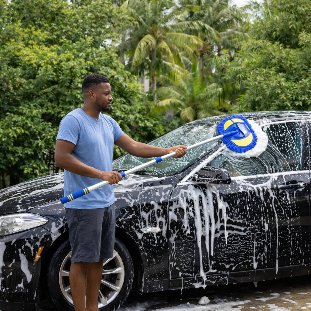 The adjustable telescopic aluminum handle allows you to safely clean roofs, windshields, bonnets, and hard-to-reach areas without bending or overextending. Built with lightweight yet reinforced materials, the pole provides exceptional stability and comfort during use.
