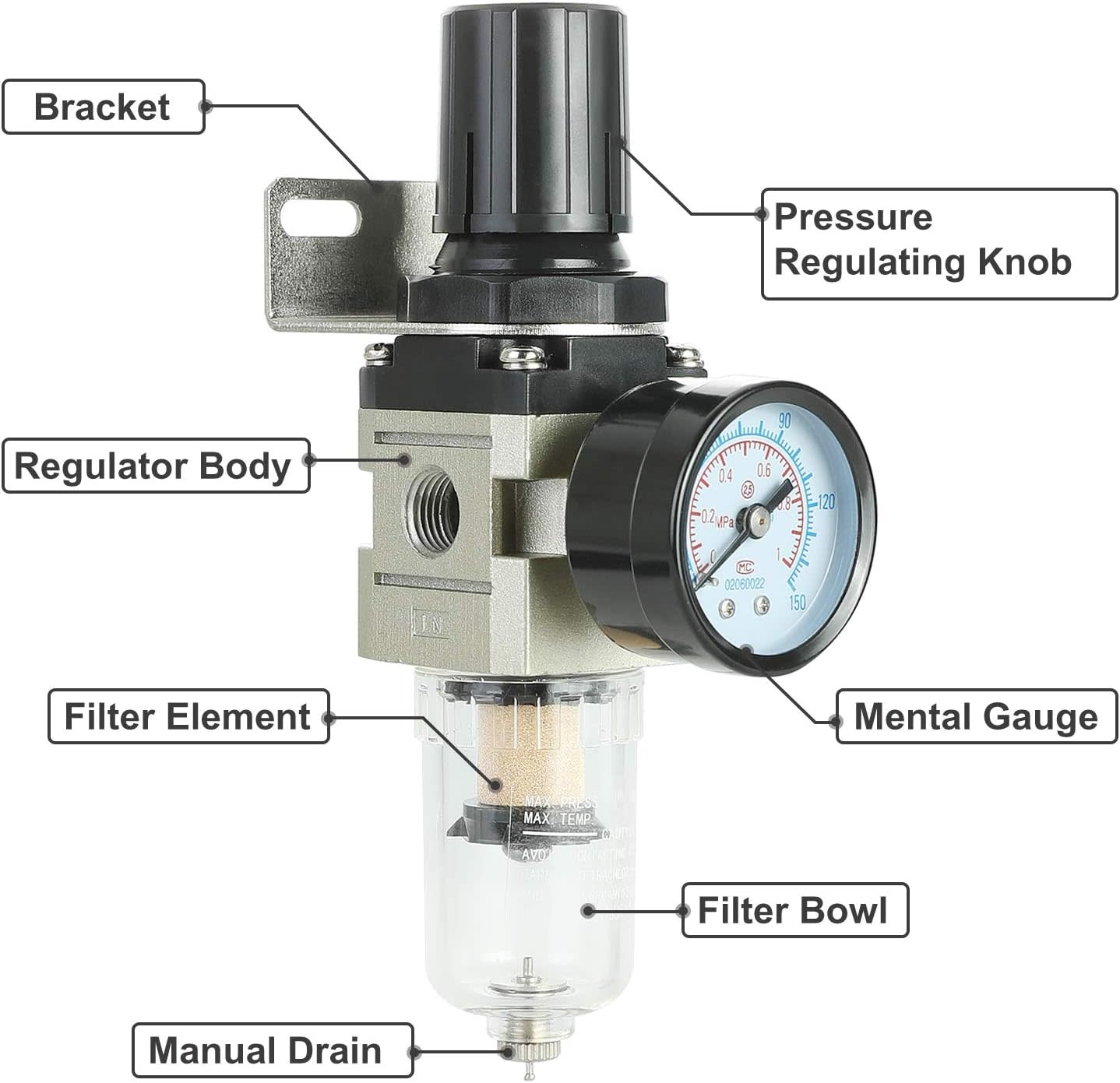 Hromee 1/4" Air Compressor Filter Regulator Combo (AW2000-02)