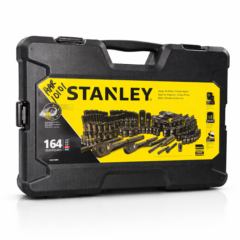 The STANLEY 164-Piece Black Chrome Socket Set is a fully equipped, high-performance toolkit designed for professionals who demand precision, durability, and versatility. Engineered for automotive, industrial, and workshop environments, this set delivers a complete fastening solution in one organized system.