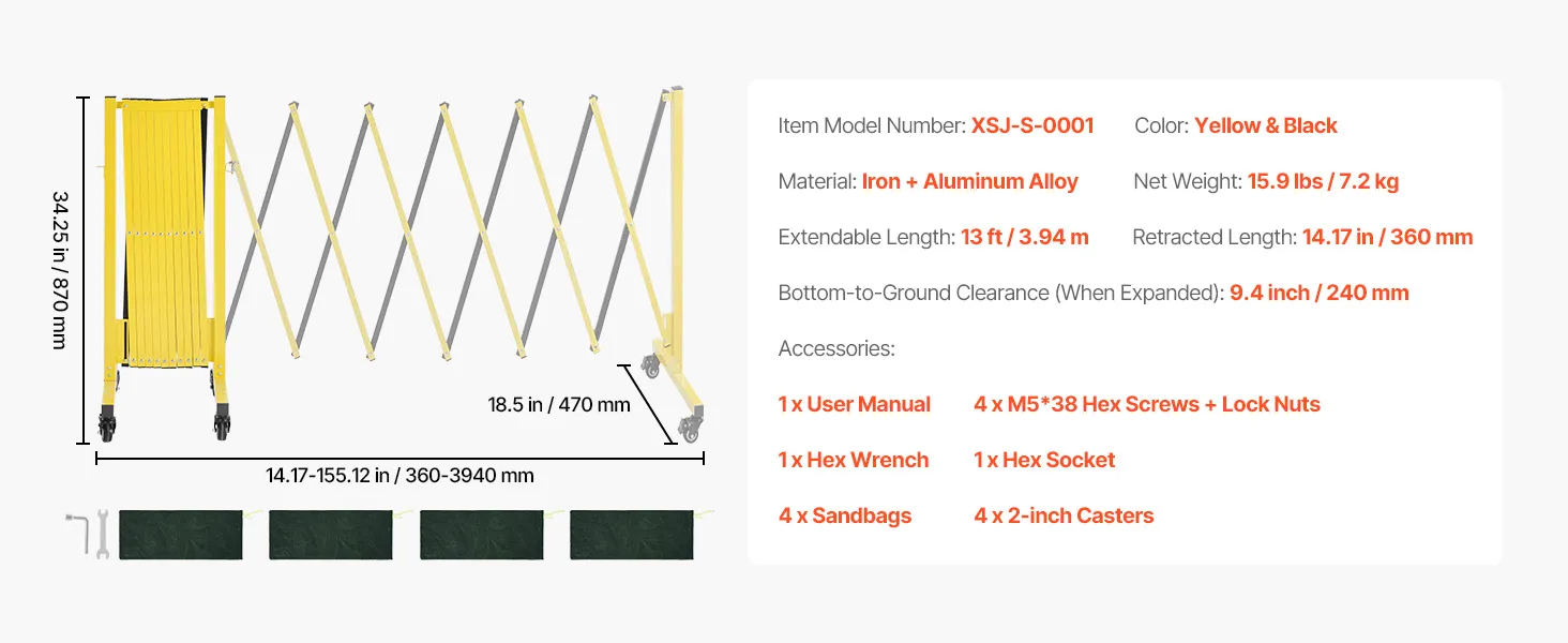 Take control of safety, space, and movement with the VEVOR Industrial Expandable Barricade — a heavy-duty, portable safety solution engineered for real-world environments.