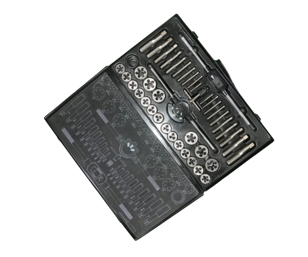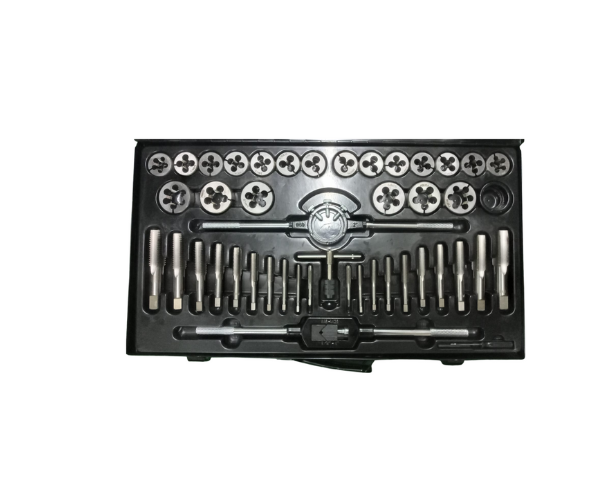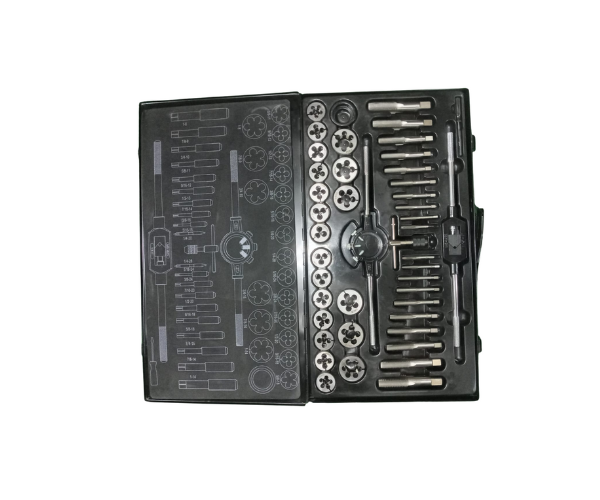 This Klutch 45-Pc. Tap & Die Set includes 20 taps and 20 adjustable dies in popular metric sizes, plus a die handle, die adapter, adjustable tap wrench, stubby screwdriver, and T-handle tap. Made from heat-treated, hardened alloy steel for durability. All fits into a metal storage case.