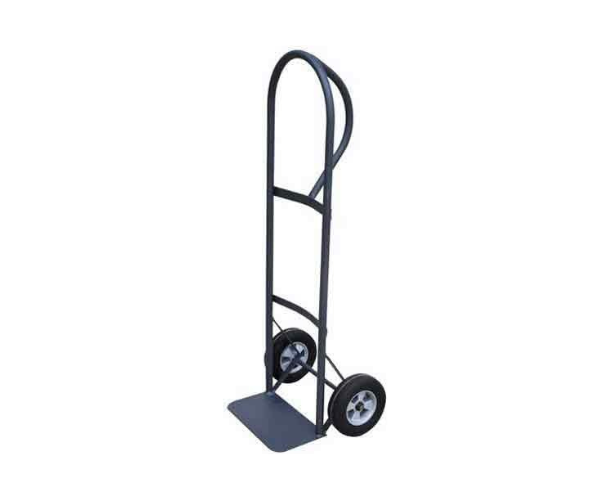 Heavy-duty P handle hand truck allows for one hand or two operations.