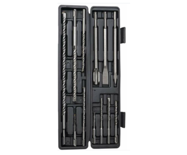 This SDS plus mixed set comes with 12 pieces and can be used with brick and concrete. All pieces are compatible with SDS plus drills with roto-stop.
