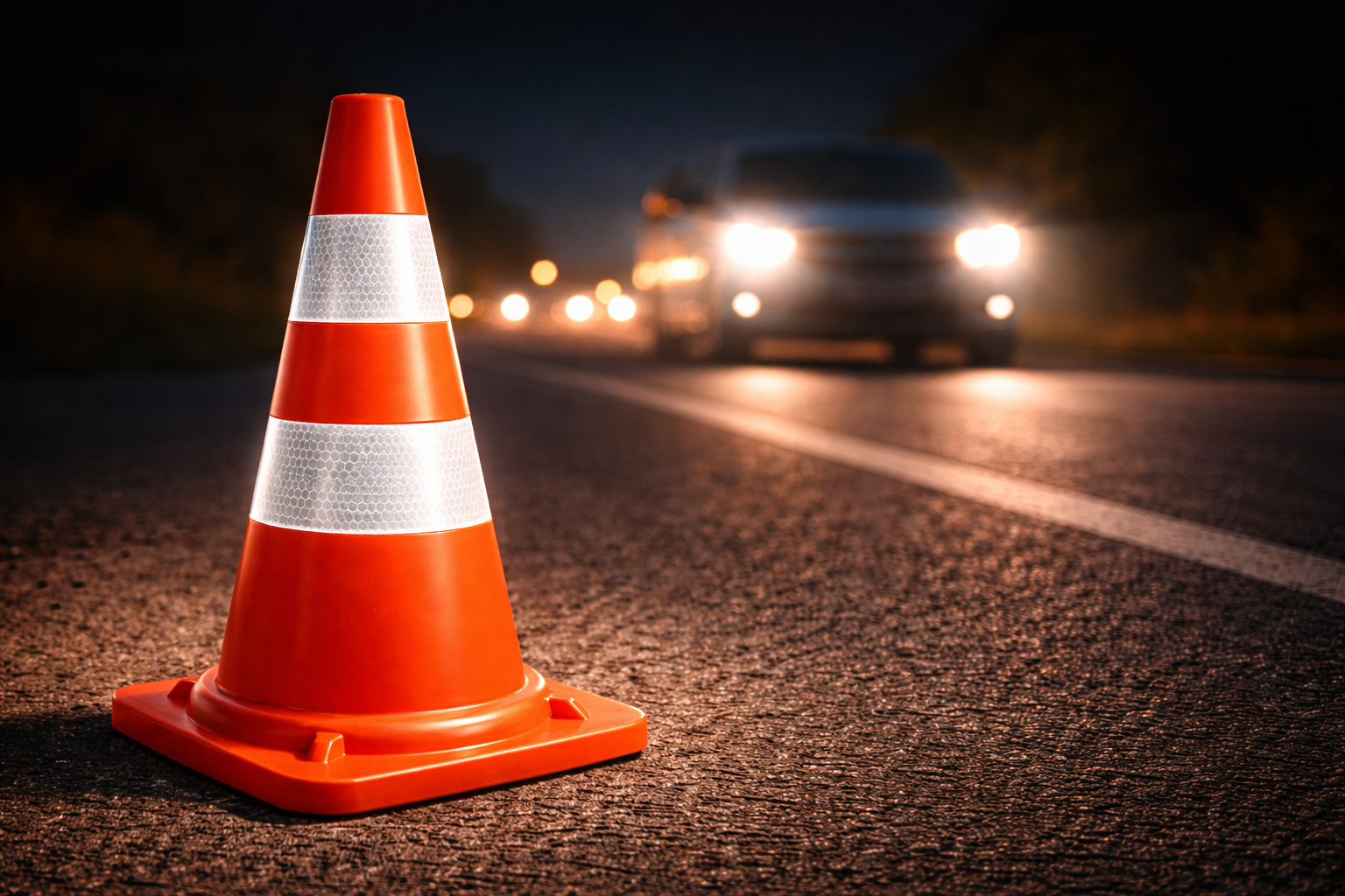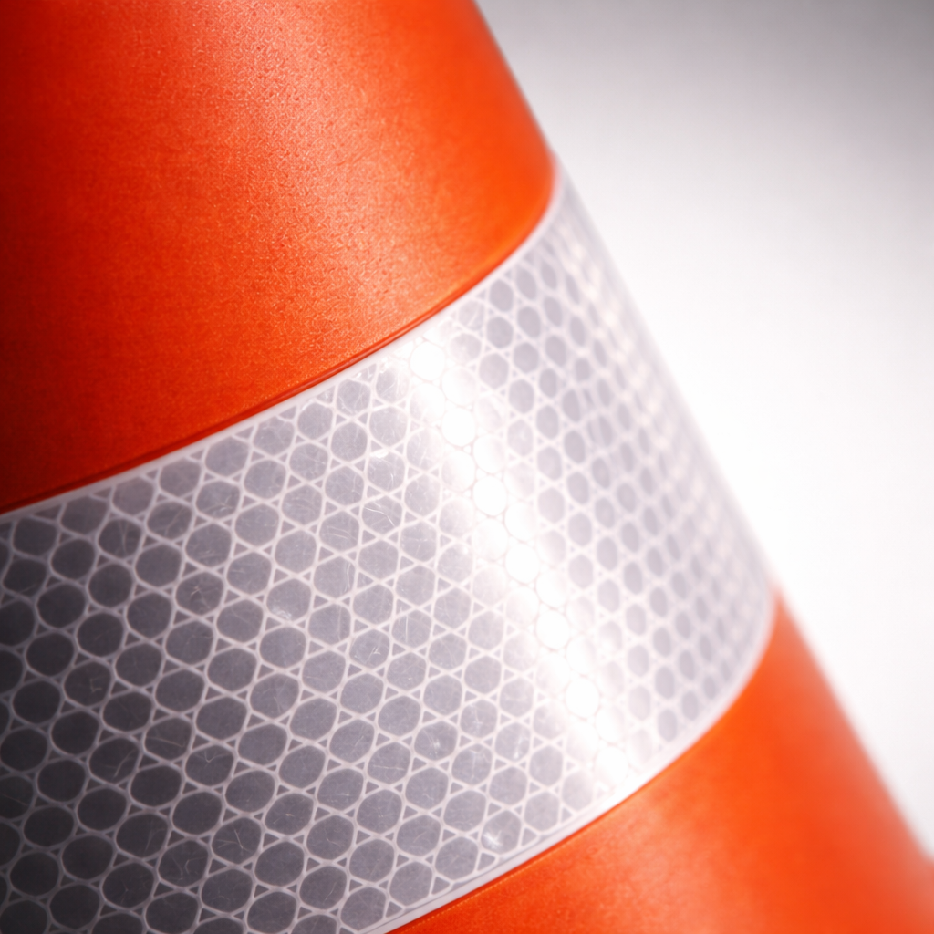 For enhanced safety, the cone features two high-intensity reflective bands positioned around the body. These reflective strips significantly increase visibility when illuminated by vehicle headlights, worksite lighting, or street lamps, helping to improve awareness during night operations and low-visibility conditions.