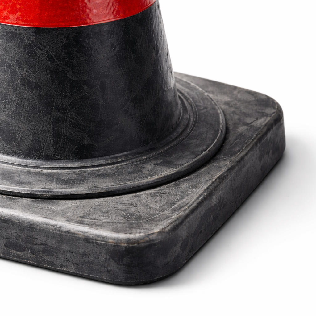 For convenient handling and rapid deployment, the cone is equipped with a reinforced lifting ring handle, allowing workers to easily carry, reposition, and stack cones during traffic control operations. The heavy integrated rubber base provides excellent ground grip and stability, helping prevent tipping caused by wind, passing vehicles, or accidental contact.