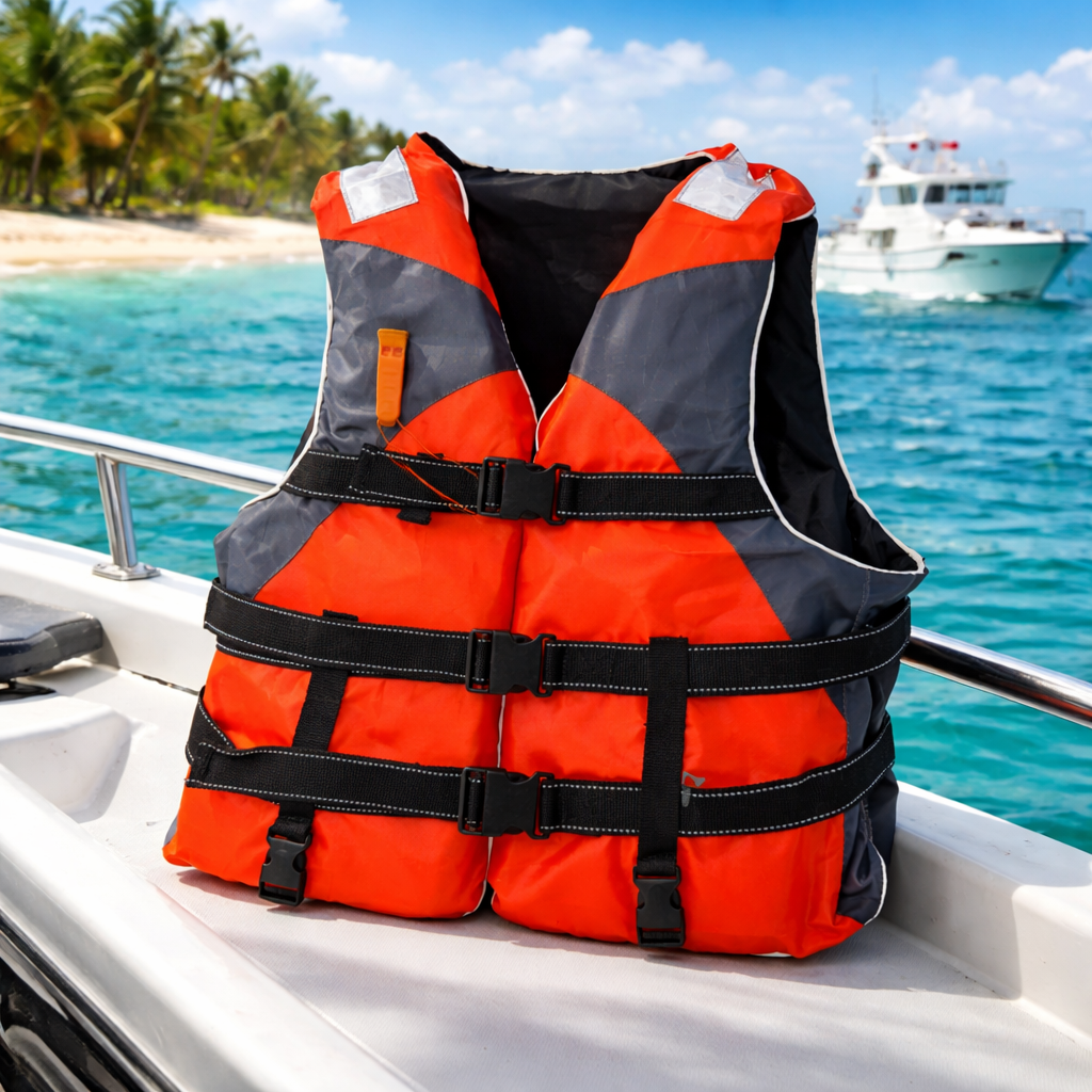 Engineered for maximum safety, durability, and reliable buoyancy performance, this adult life jacket is designed to provide dependable protection across marine, industrial, and emergency environments. Featuring a high-visibility orange exterior with contrasting dark reinforcement panels, it ensures excellent visibility in both daylight and low-light rescue conditions.