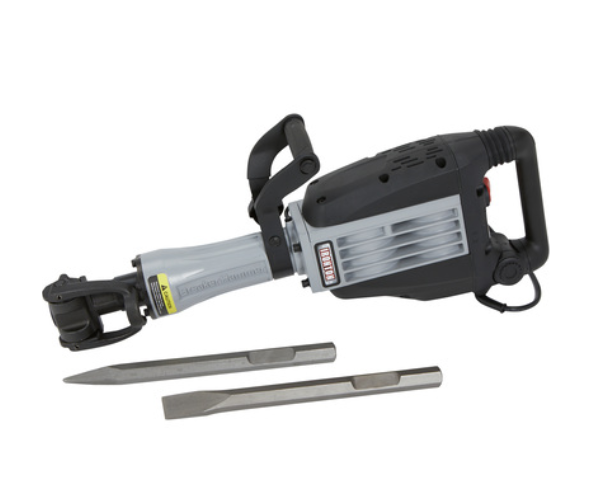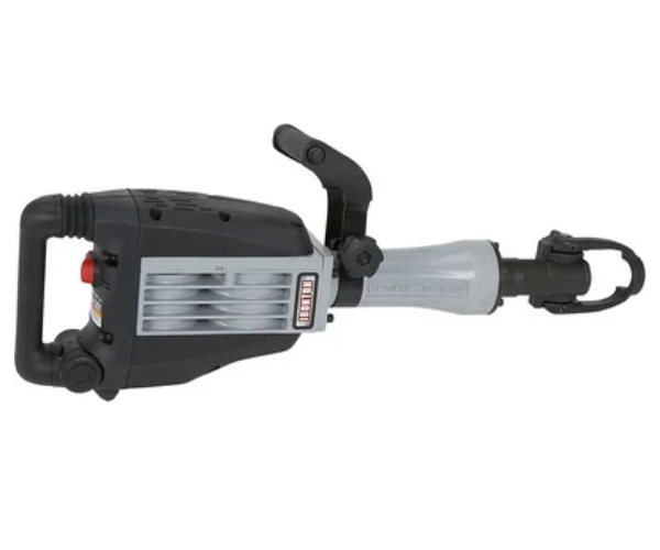 - A heavy-duty demolition breaker hammer is powered by a 15 Amp, 110V motor