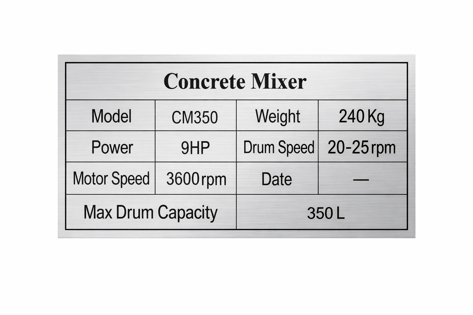 | Drum Capacity | 350 Liters |