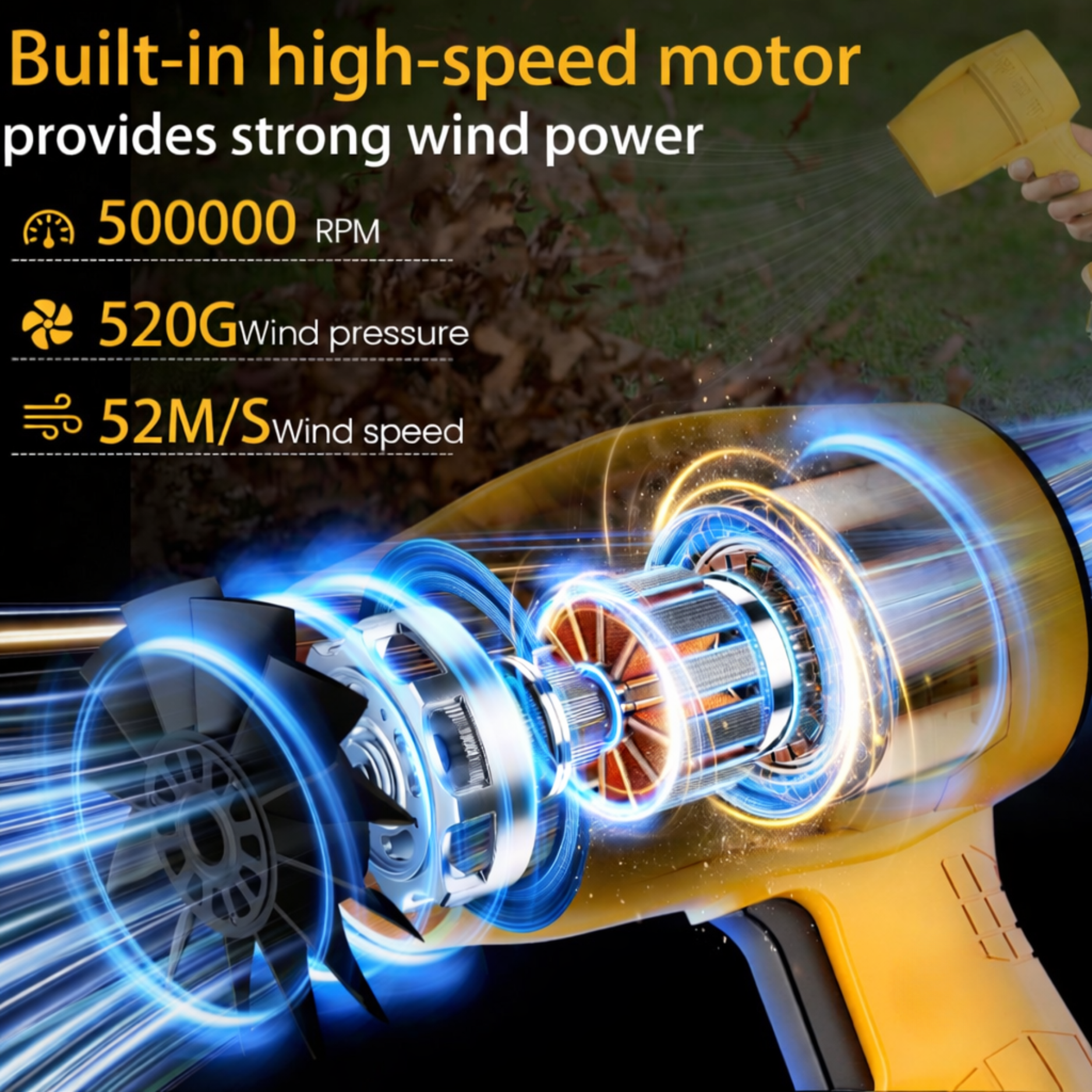 Handheld Electric Cordless Leaf Blower – 500,000 RPM Mini Turbo Jet Blower (Yellow)