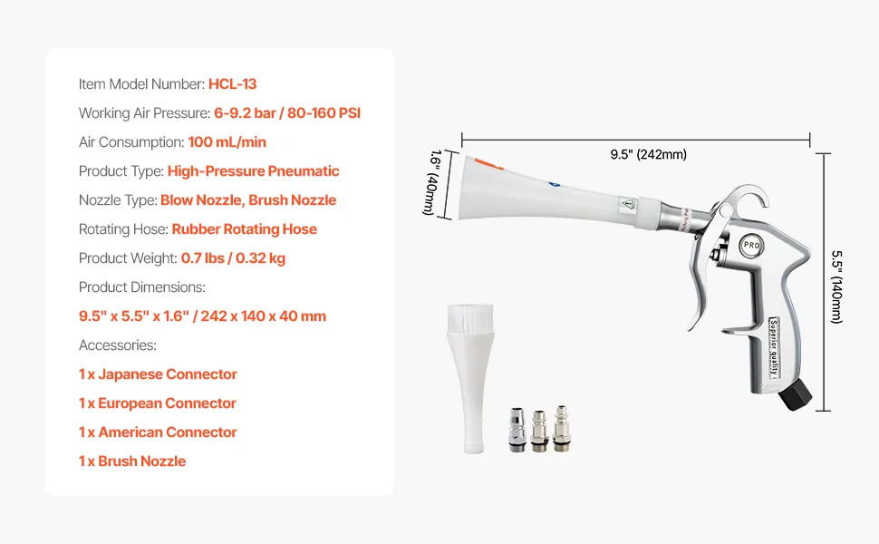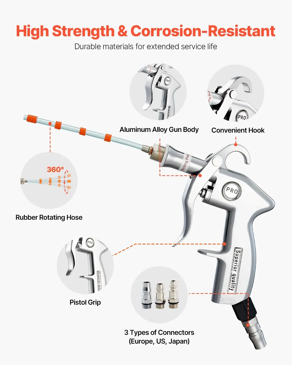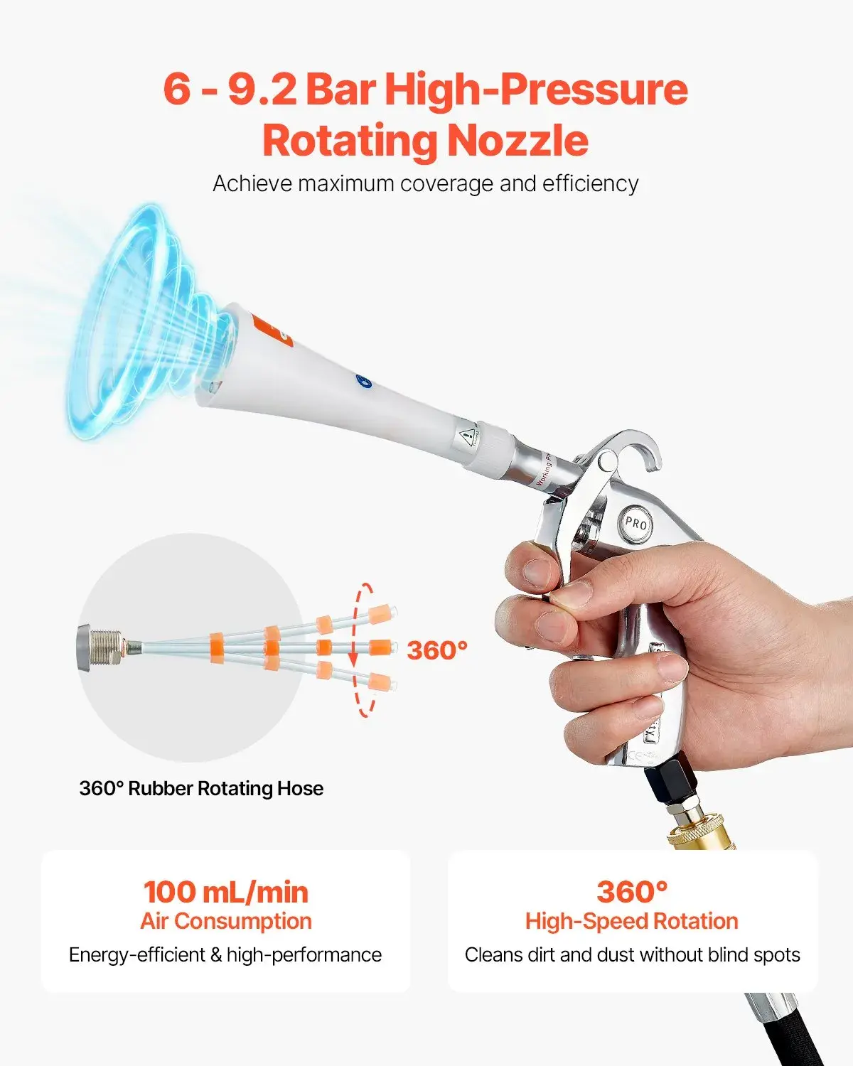 6–9.2 Bar Air Blow Gun with 360° Rotating Nozzle for Deep Interior & Exterior Cleaning