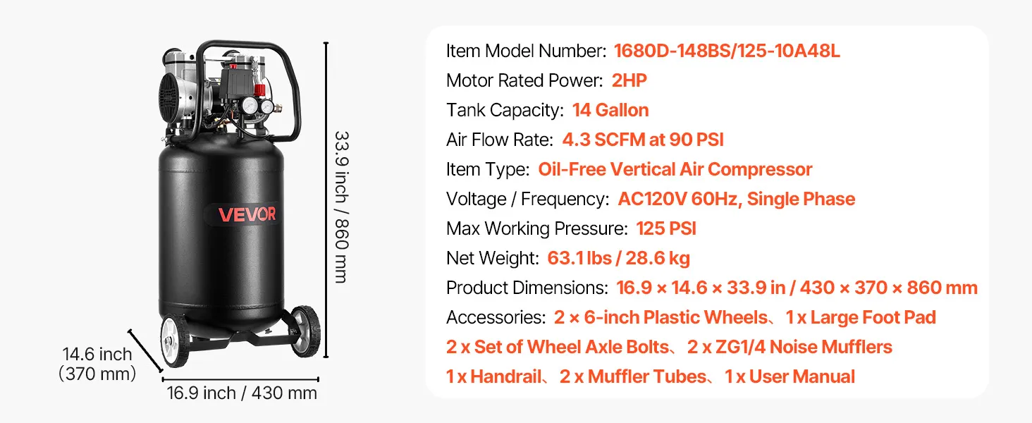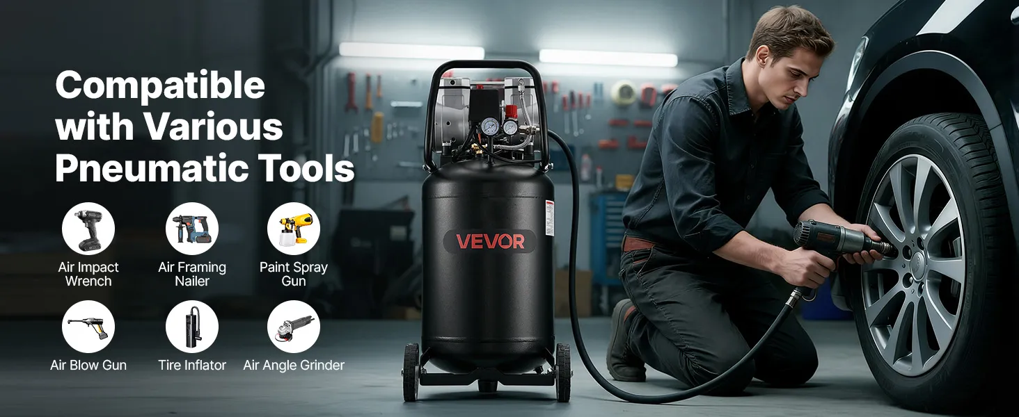 Built for performance, durability, and efficiency, the VEVOR 14-Gallon Oil-Free Air Compressor is engineered to handle real-world demands across automotive, workshop, and home applications.