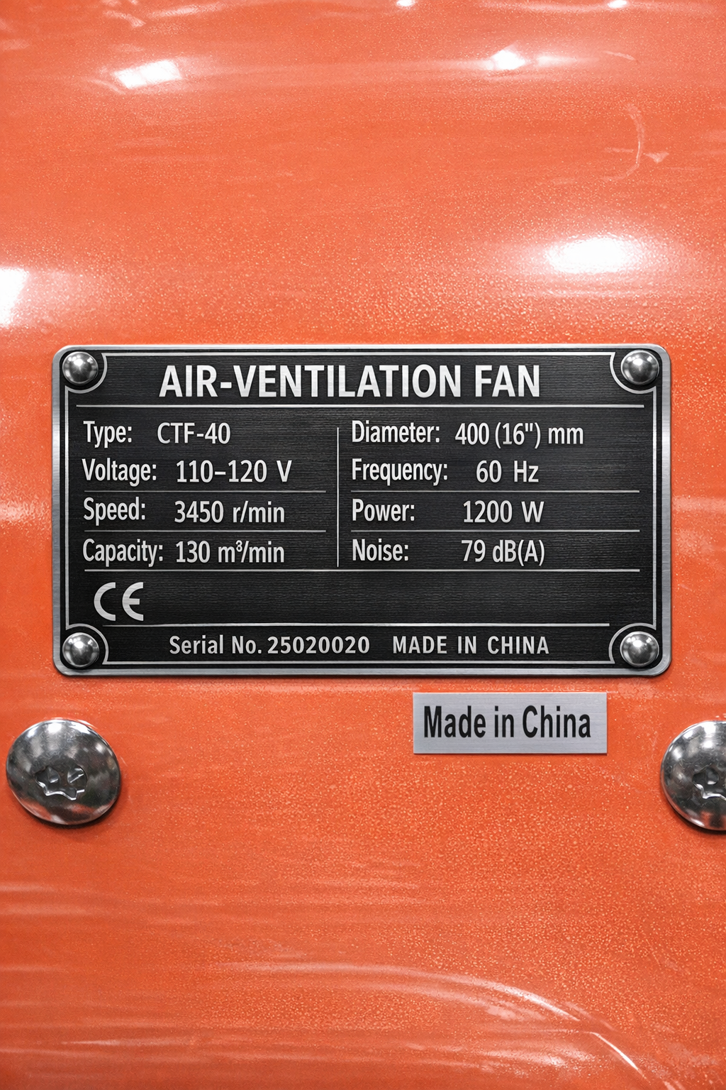 BETA STAR IND9750 FAN/BLOWER 16" 120V 60HZ 3450RPM 1200 WATTS VENTILATION FAN-D/S