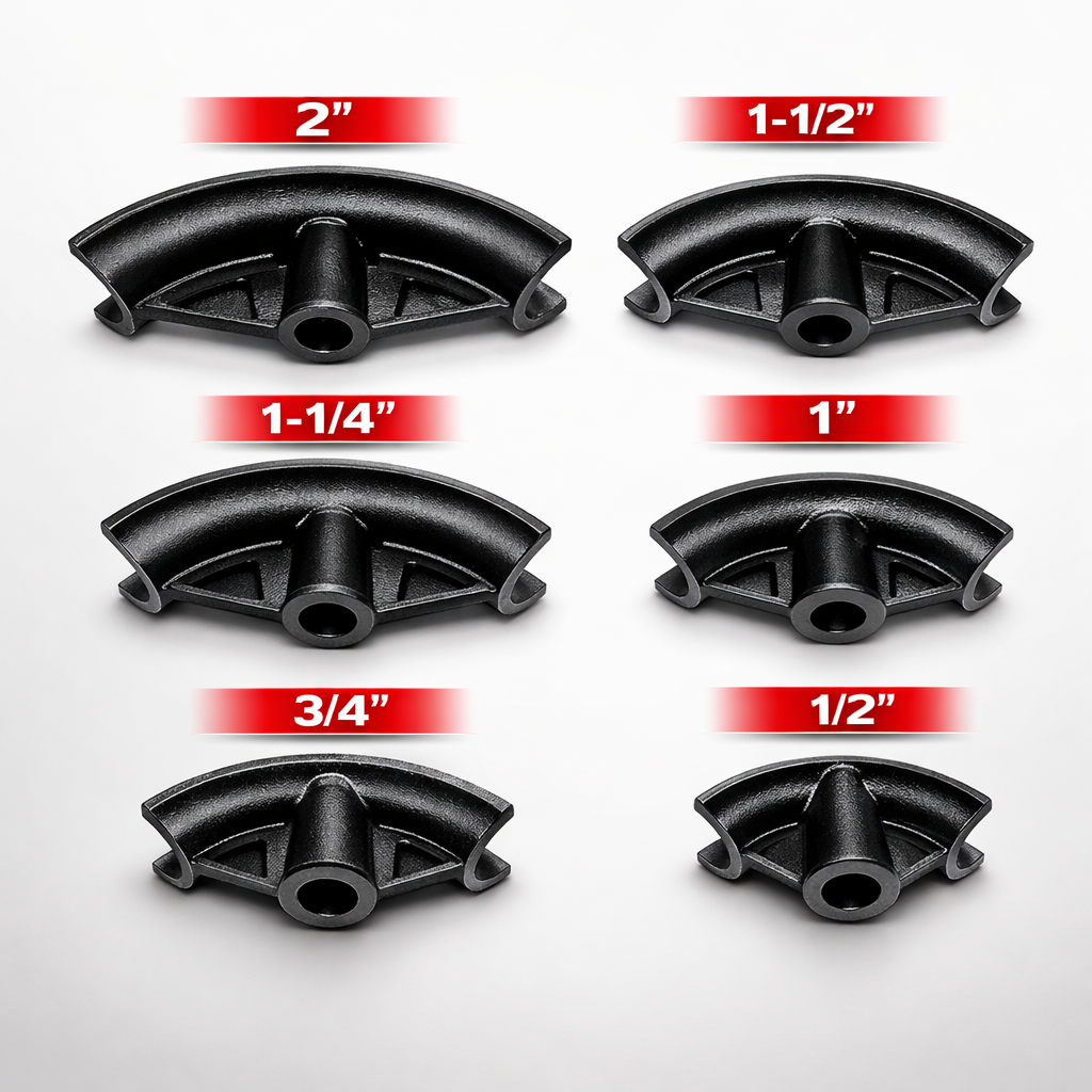 Each die is manufactured from solid cast iron to ensure strength, longevity, and accurate bending radius.