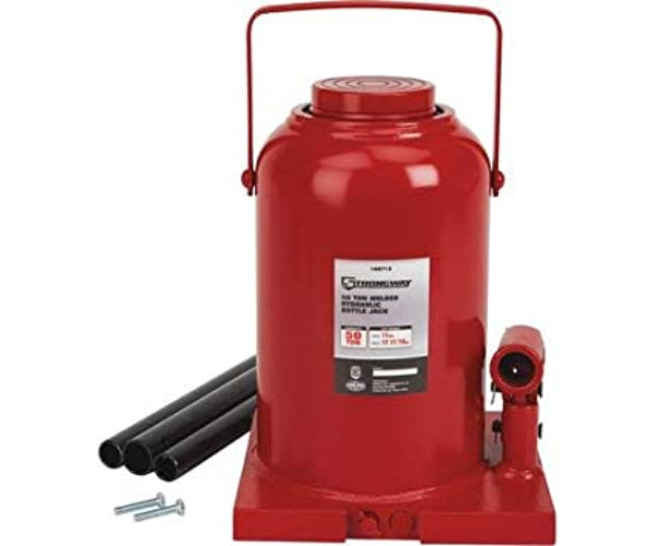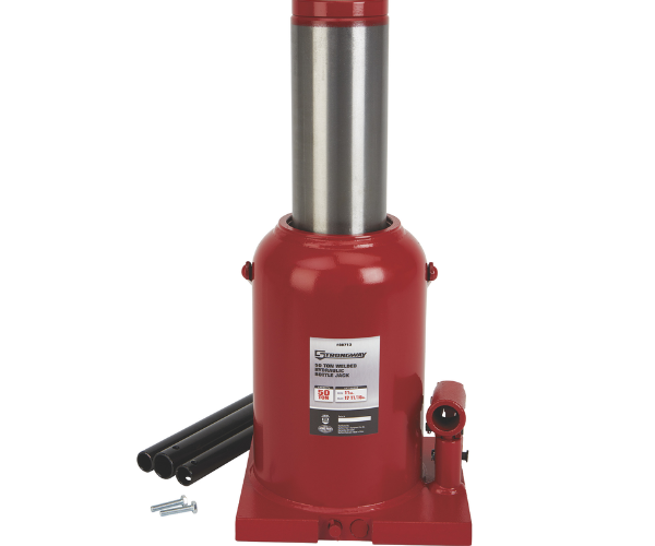 This powerful, heavy-duty Strongway™ 50-Ton Hydraulic Bottle Jack with Welded Base features a high-quality glide-action pressure pump designed for hard-hitting commercial use