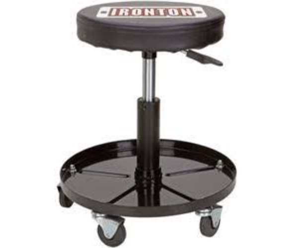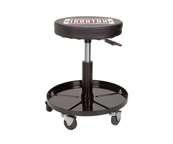 The Ironton Oversized Pneumatic Swivel Stool helps you add some comfort and class to your garage, shop, or man cave. The 14.1in. dia. padded vinyl seat swivels 360 for flexibility and comfort.
