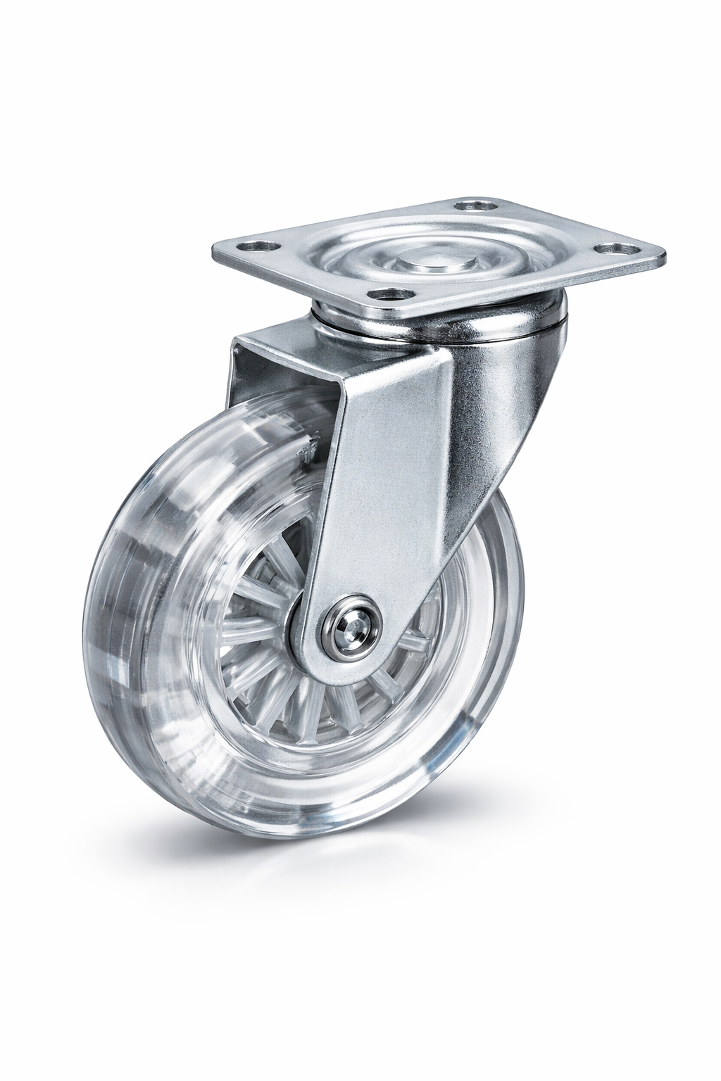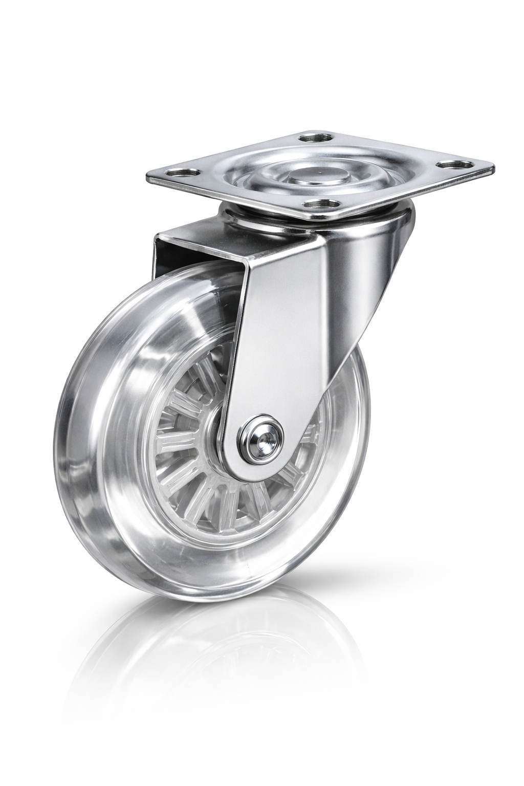 The BETA STAR Clear Polyurethane Swivel Caster Wheel is engineered for smooth, quiet, and reliable movement on a wide range of floor surfaces. Designed with a clear polyurethane wheel and a heavy-duty steel swivel assembly, this caster offers excellent manoeuvrability while protecting floors from marks and scuffs.