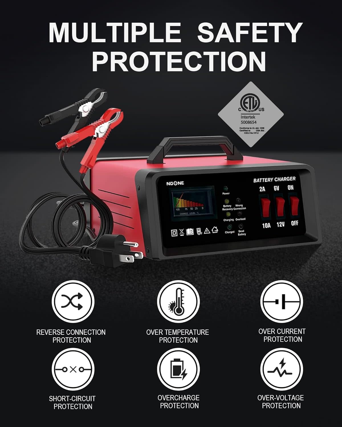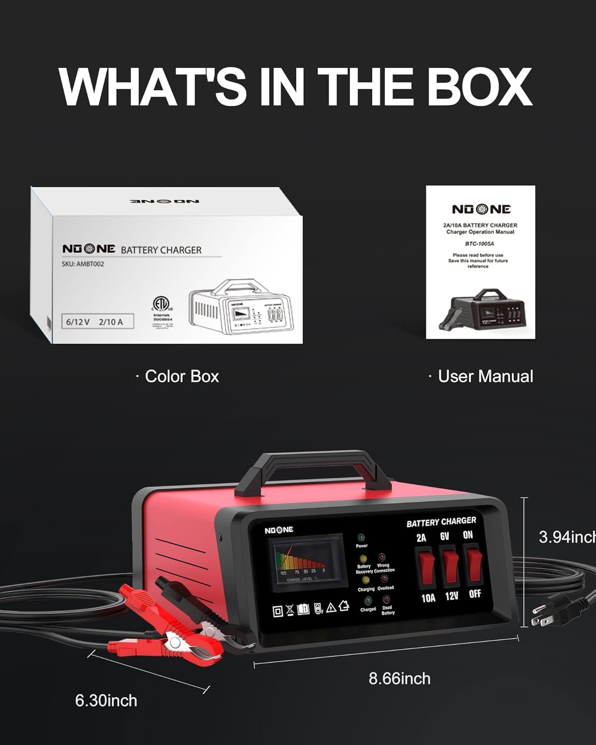 The NOONE 2A/10A Battery Charger delivers a powerful combination of safety, efficiency, and versatility. Whether you need to maintain, charge, or restore your battery, this charger provides reliable, professional-grade performance in a compact and durable design.