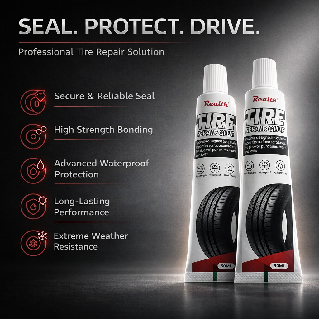 The REALTH Tire Repair Glue Kit is a high-performance, emergency-ready solution designed to deliver fast, reliable, and durable tire repairs across a wide range of vehicles. Engineered with heavy-duty rubber bonding technology, this advanced sealant effectively seals punctures, prevents air leakage, and restores tire integrity with ease.