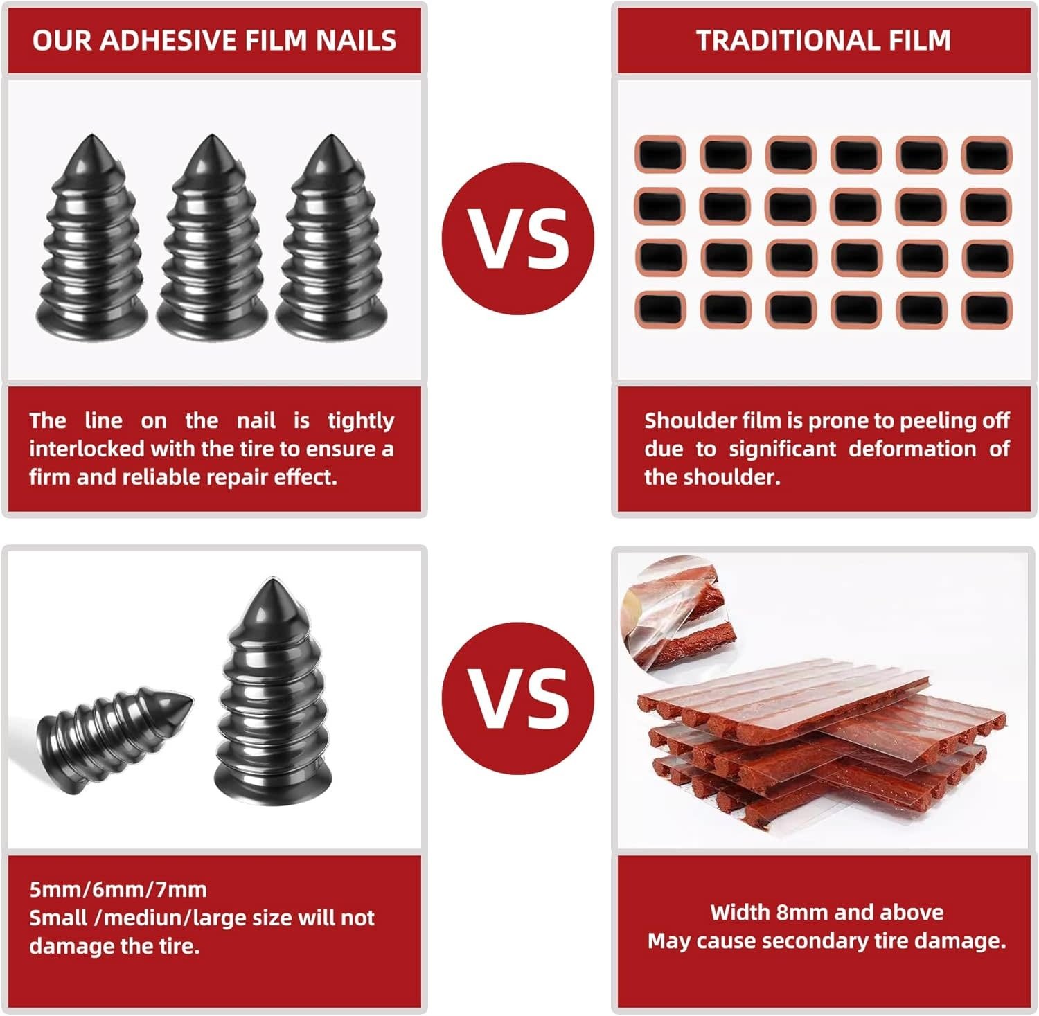 This complete repair kit includes 100ML premium rubber cement, dual-size tire repair nails, and essential tools—making it the perfect on-the-go solution for cars, motorcycles, bicycles, ATVs, and light trucks.